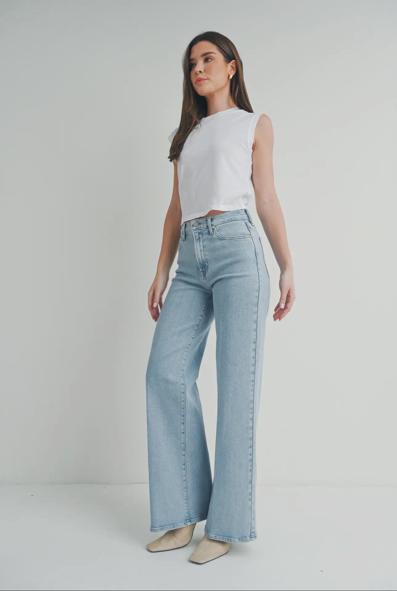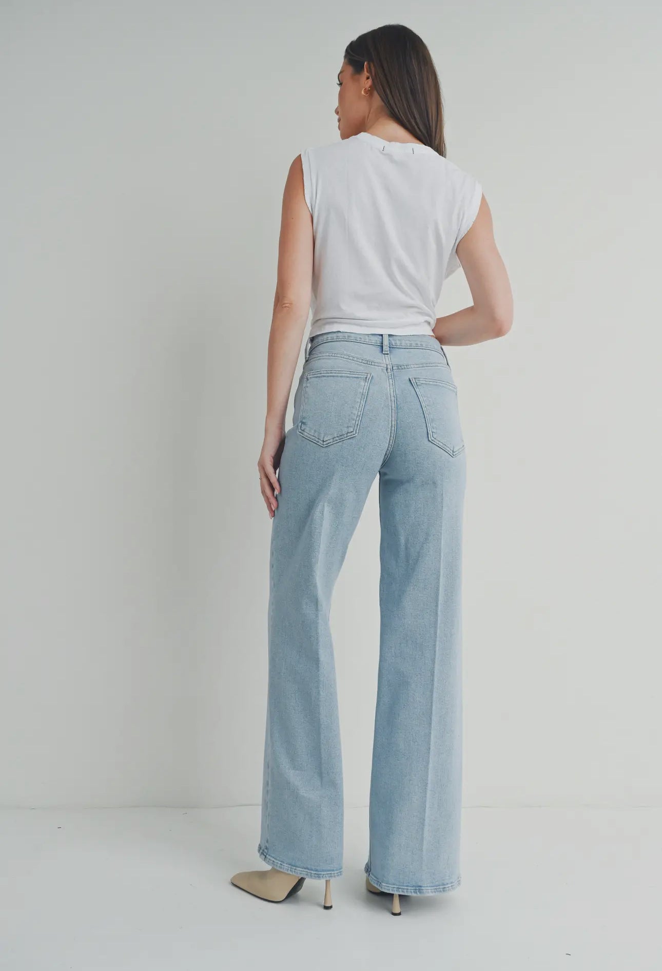 Just black denim brand. Light denim palazzo jean. Pleated 32 inch inseam